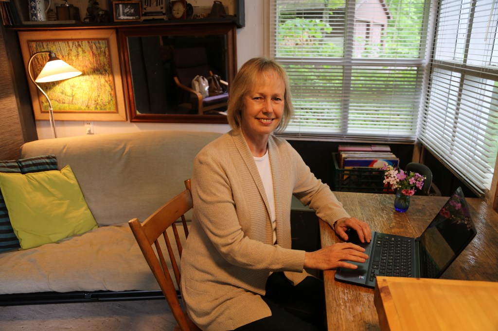 My writing life is spent in a cabin on the property of a kind friend, whose house in the woods looks out on the great St. Lawrence River. I rest, connect, and write to the sounds of birdsong, wind in the trees, and waves shushing into shore, to the feel of the cool breeze coming off the river through the open window.
